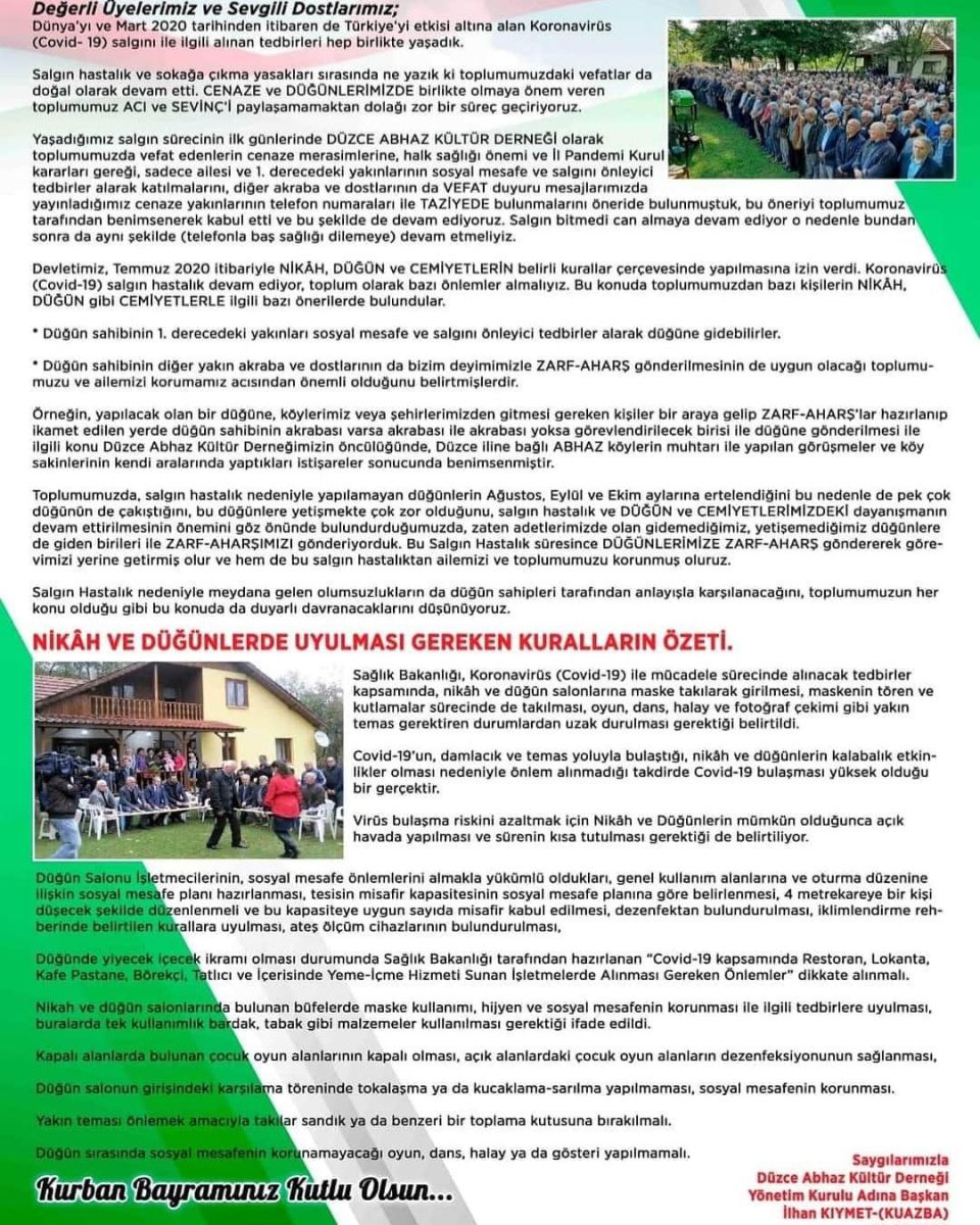 Düzce Abhaz Kültür derneği Sosyal etkinlikler ile ilgili tavsiye ve talepleri içeren bildiri yayınladı.